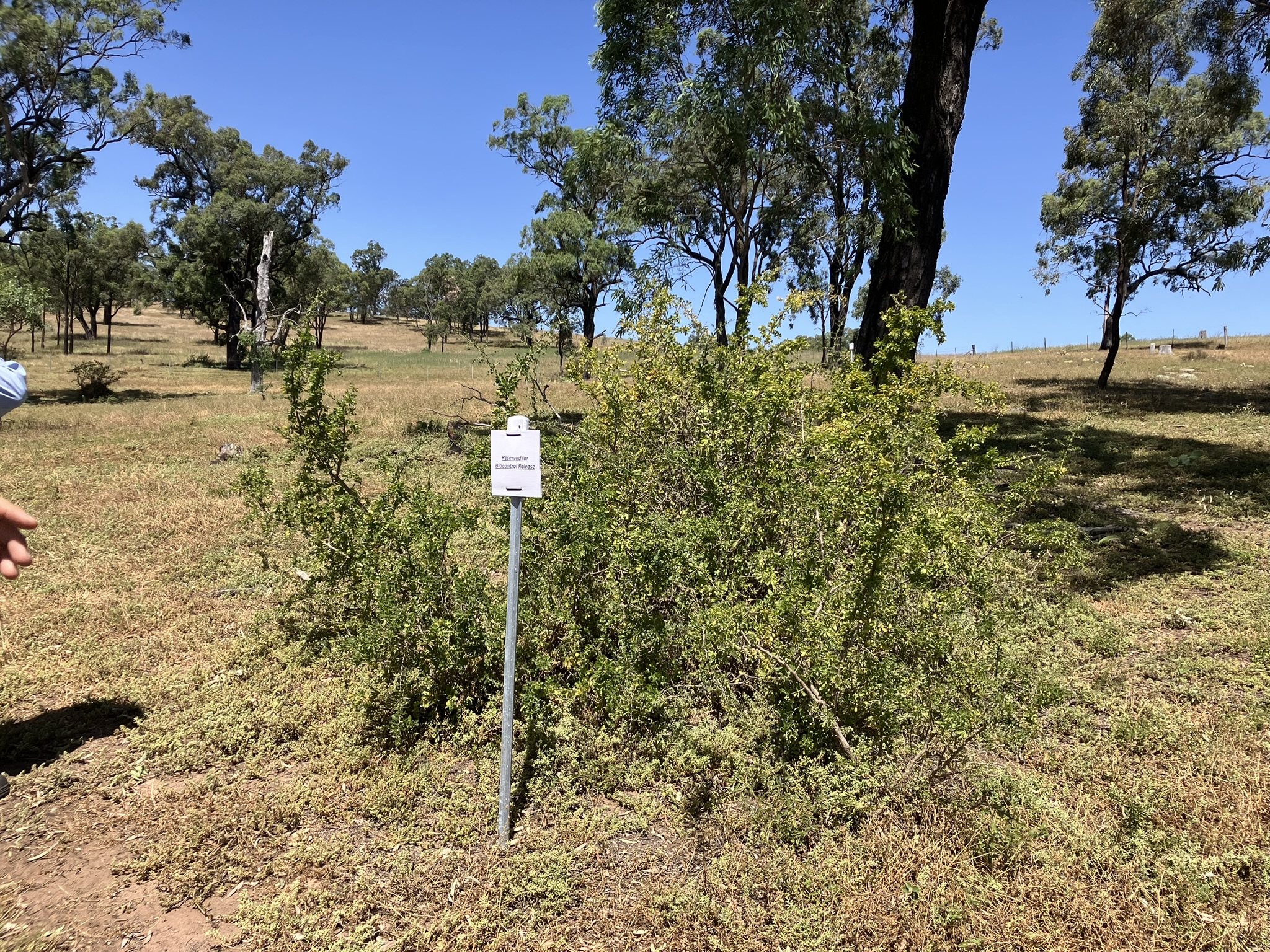 African Boxthorn sign: 'Reserved for Biocontrol Release.' Photo courtesy of CSIRO.