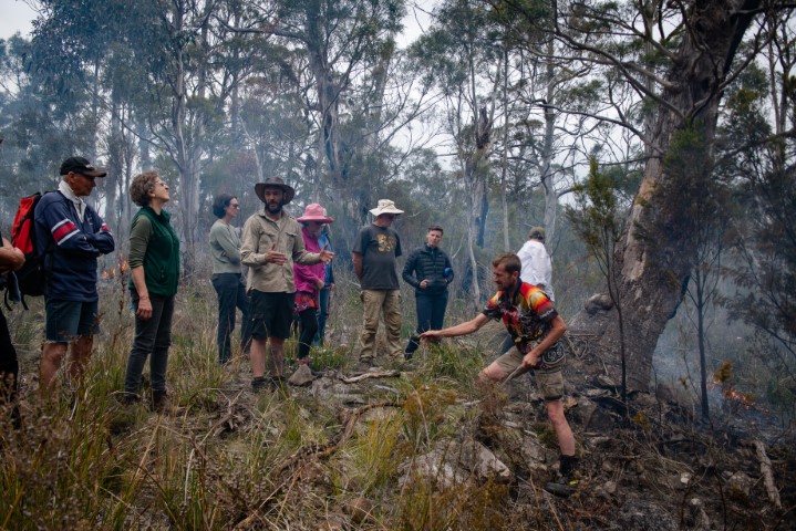 Image: Cultural Burning Workshop with Landcare Tasmania members and SETAC 2021. Photo: Anna Cadden