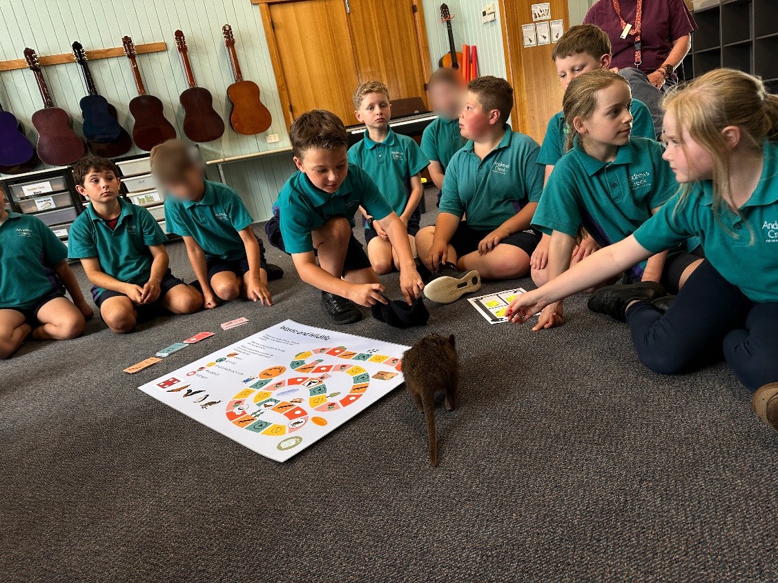 For students in the two classes attending the workshop, understanding the waste and wildlife problem meant first stopping to appreciate the animals in their own neighbourhood. The children were quick to mention those species they often meet in their daily travels - like wallabies, blue tongue lizards and cockatoos - and share some anecdotes about encounters with rarer animals like the Tasmanian Devil.