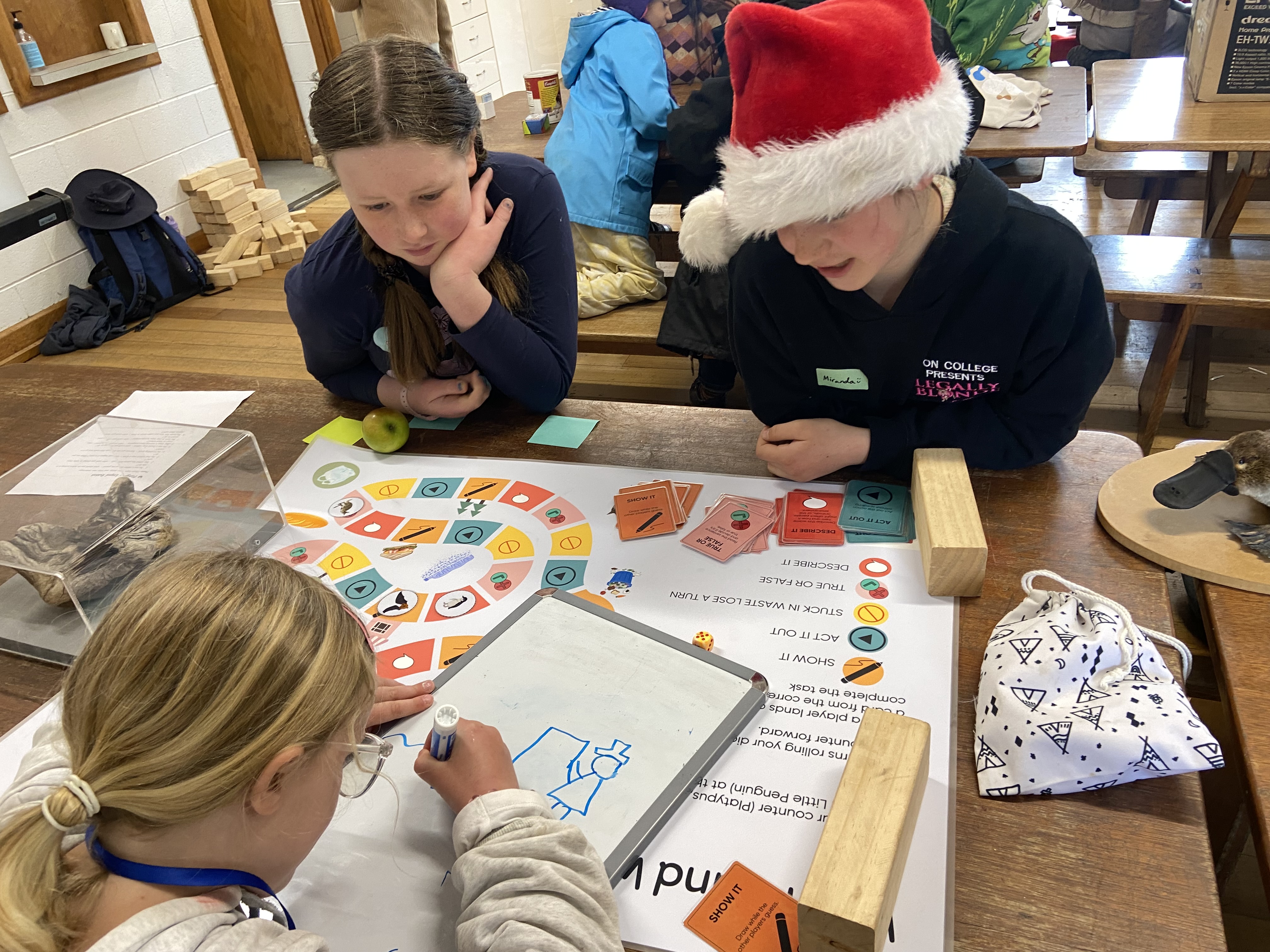 Homeschool camp children playing Landcare Tasmania’s Waste & Wildlife board game.